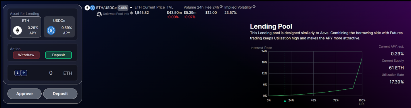 When the assets deposited into the lending pools are used to open short strangle positions, those assets are then deposited into UniV3. The more users deposit into the lending pools, the more short strangles can be opened, which enables more long strangles to be opened as well. Soon, I would expect to see ARB, GYEN, and LUSD available to lend as well in order to facilitate liquidity for their respective short strangle positions.