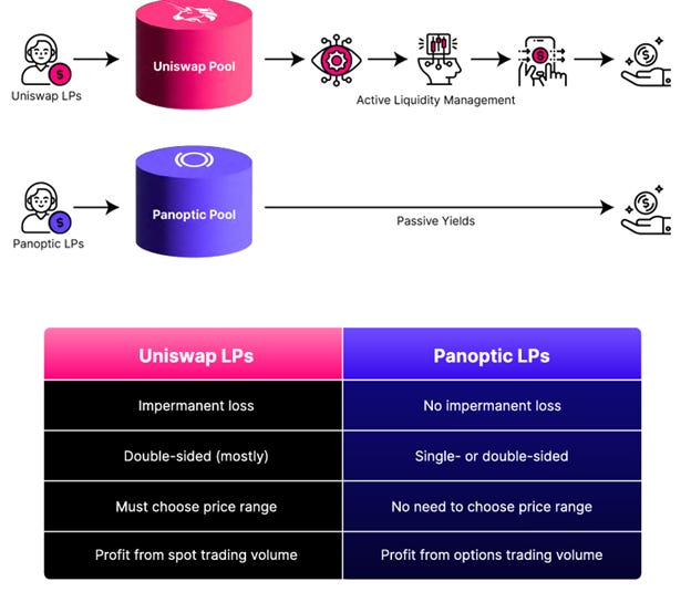 Panoptic aims to solve the problem of liquidity fragmentation, specifically pooling liquidity in order to create a sustainable on-chain options market with what they call XPOs: expirationless perpetual options.